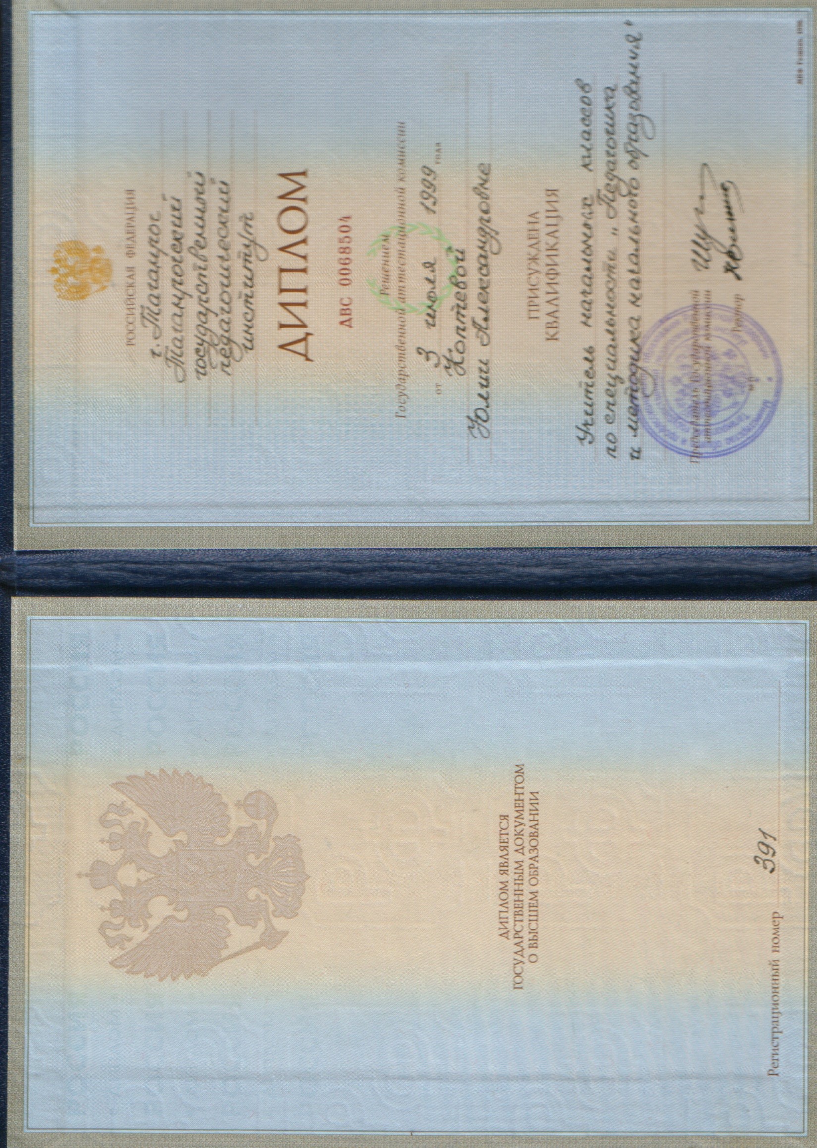 г. Таганрог, Таганрогский государственный педагогический институт 1999г.