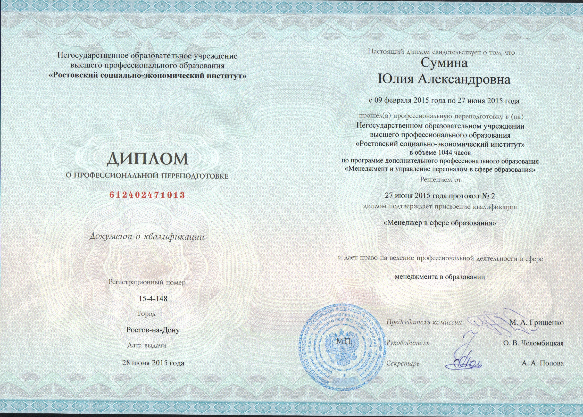 г. Ростов-на-Дону, НОУ высшего профессионального образования «Ростовский социально-экономический институт» 2015г
