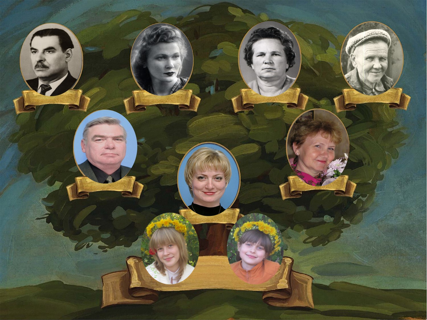 Сколько на Земле будет существовать человечество, столько, наверное, будет жить народная мудрость «В предках наши корни». Если строить древо моей семьи, то можно представить его в виде могучего дуба. Корни этого дуба крепко обосновались на Донской земле. В 1928 году Глушко Прокофий Васильевич приехал первым механиком в учебно-опытное хозяйство «Зерновое». Его жена, Елена Павловна, была селекционером. С ними приехал поднимать целину ее брат, Чеботарев Иван Павлович. Я горжусь тем, что мои предки строили самый красивый город, в котором я родилась. По линии отца мой прапрадед, Коптев Василий Алексеевич и прабабушка, Матвиевская Дина Евгеньевна – коренные ростовчане. Ствол этого дерева необъятный, потому что родственников у меня очень много, а ветви раскинулись по всему бывшему Советскому Союзу.